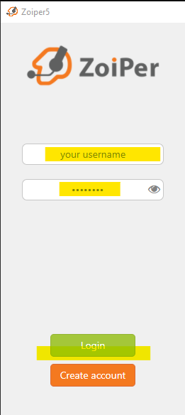 Click on ZoiPer Icon on your desktop to launch ZoiPer.Enter your username and password.Enter your phone server.Click on SKIPAccount Registered. Click X to close the account settingsIt is ready for you to make phone calls.